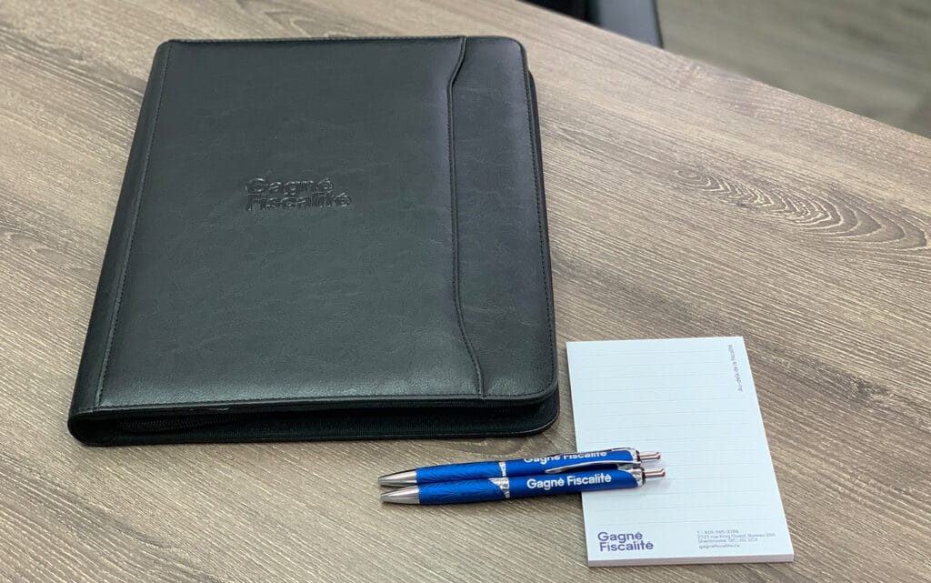Gagné Fiscalité – porte-documents, stylos et blocs-notes